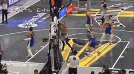 其后,文班在与波杰争抢球权时摔倒